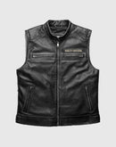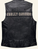 This Harley Davidson vest for men features a true aesthetic design including a stand-up collar and zip-up closure. Multiple pockets, including a hand warmer, chest pocket, and stash pocket, provide enough storage space for all your essentials. Overall, the vest's design is sleek and minimal in distressed black color. Whether you are a road warrior or simply looking for a fashionable leather vest, you can bet this will be quite impressive.