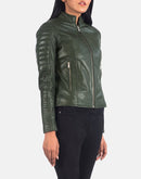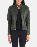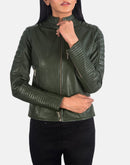 Adalyn Quilted Green Leather Biker Jacket Get ready to turn heads in this Adalyn Quilted Green Leather Biker Jacket. Made from high-quality leather, this jacket boasts a vibrant green hue...