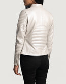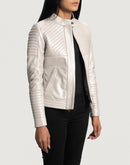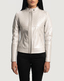 Ice Maiden Silver Quilted Leather Biker Jacket