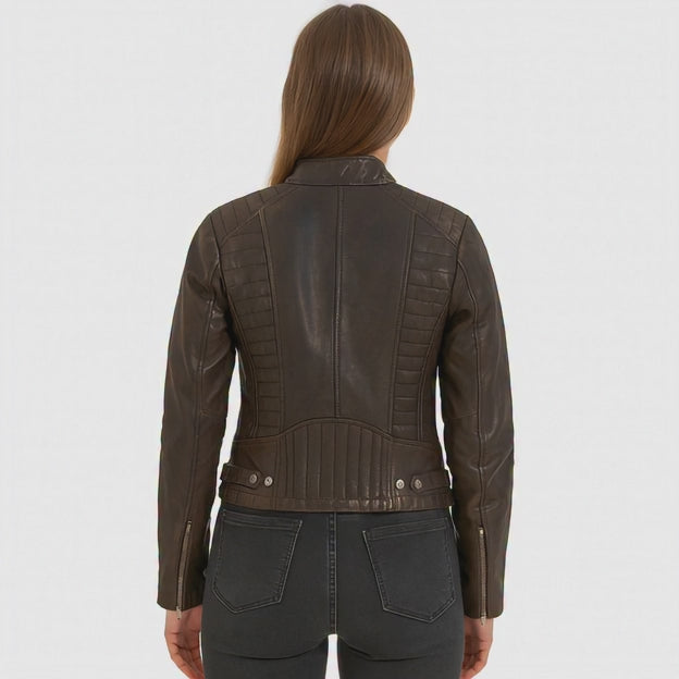 The Rachel Women's Dark Brown Sheep Leather Jacket is the perfect combination of luxury, comfort, and versatility. Whether you're dressing up for a night out or adding an elegant touch to a casual look, this jacket is sure to become a wardrobe staple. Add a touch of refined style to your wardrobe with the Rachel Women's Dark Brown Sheep Leather Jacket.