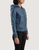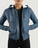 Whether you're running errands or heading out for a night on the town, the Luna jacket has got you covered. Pair it with your favorite jeans and sneakers for a casual look, or dress it up with a skirt and heels for a night out. No matter how you style it, this hooded leather bomber jacket is sure to turn heads and make a statement wherever you go. Add the Luna Blue Hooded Leather Bomber Jacket to your wardrobe today and elevate your style game!