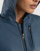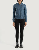 The Luna Blue Hooded Leather Bomber Jacket combines fashion-forward design with comfort. The cozy hood provides added warmth on chilly days, while the ribbed cuffs and hem offer a snug fit that keeps the cold out. With its sleek silhouette and flattering fit, this blue bomber jacket is sure to become your go-to outerwear staple for everyday wear or special occasions.