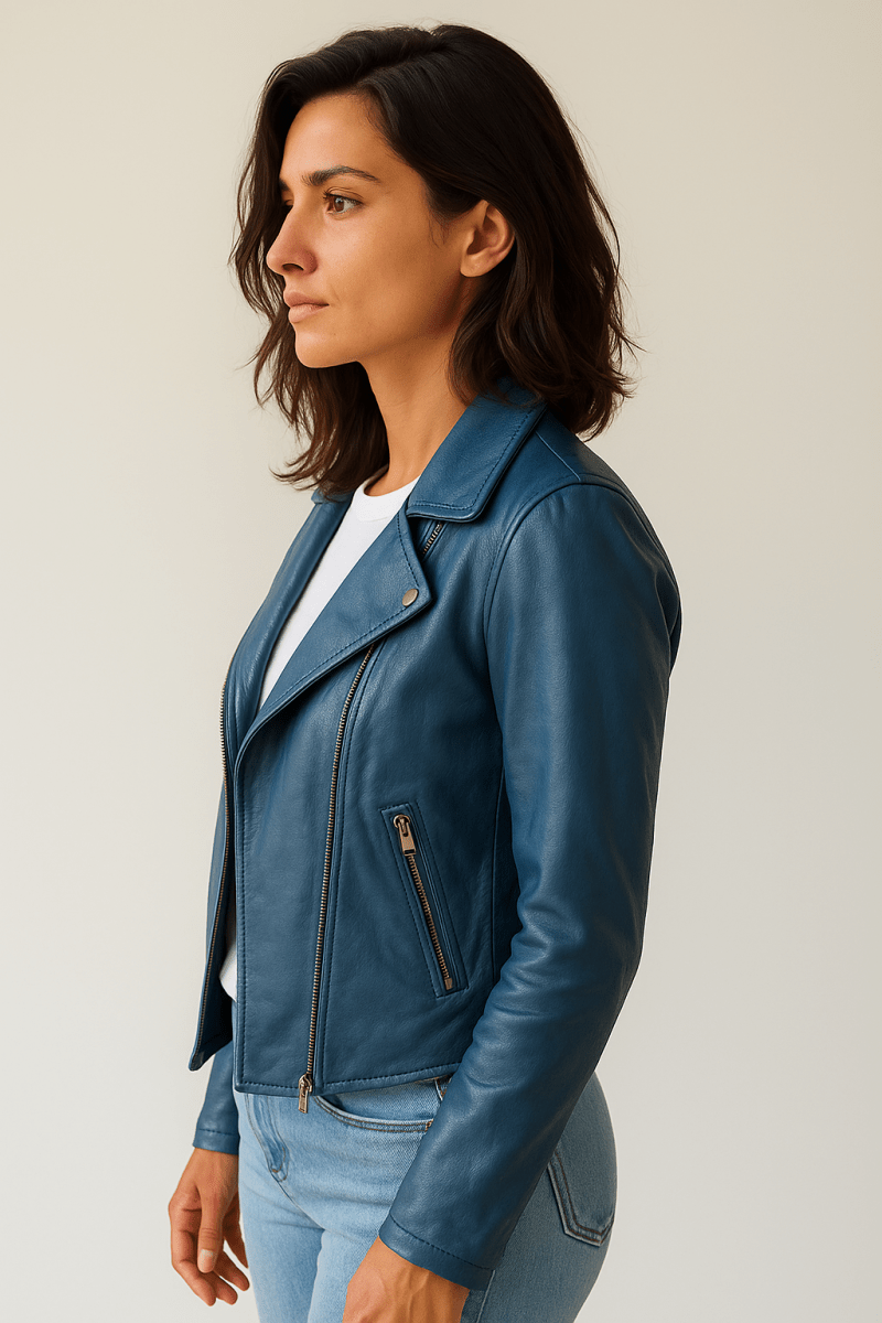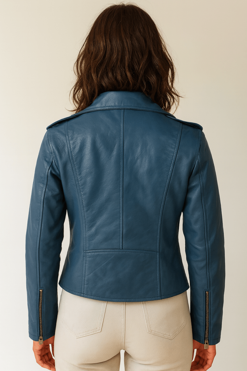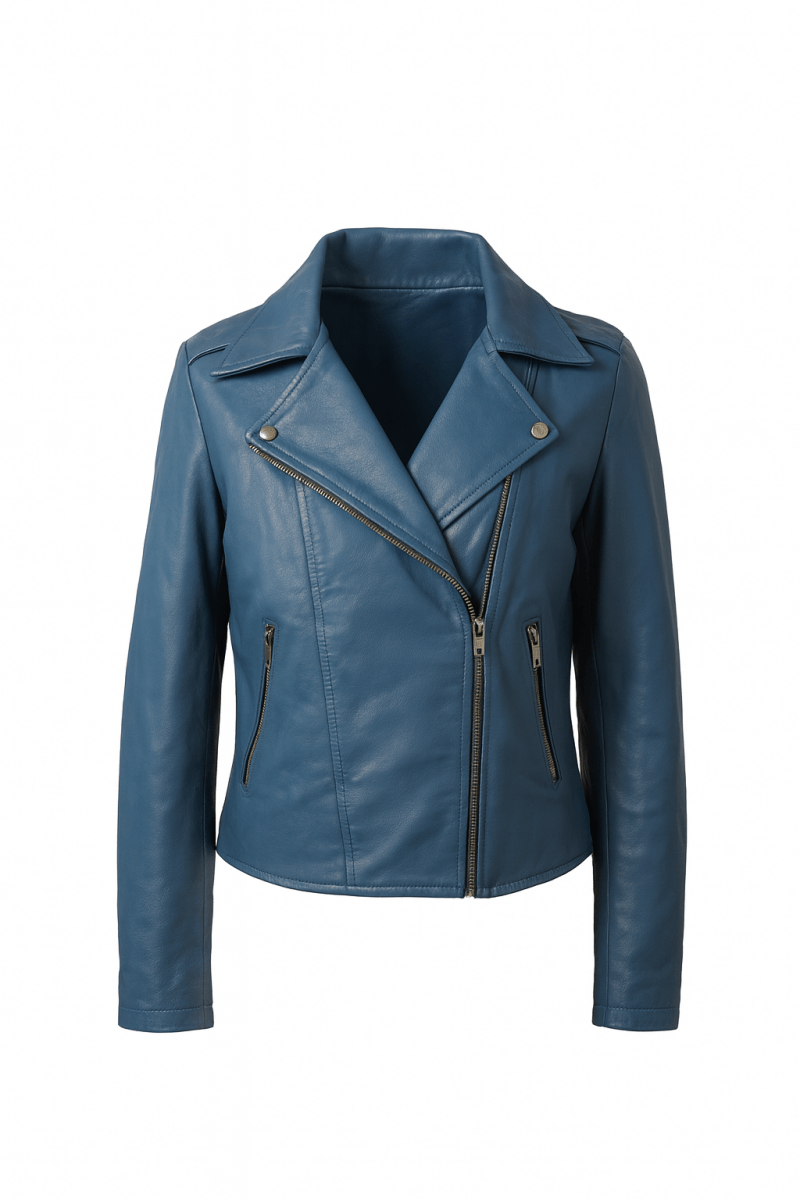 Flashback Blue Leather Biker Jacket - Pelleaura | Premium Quality Leather Stuff Brand USA