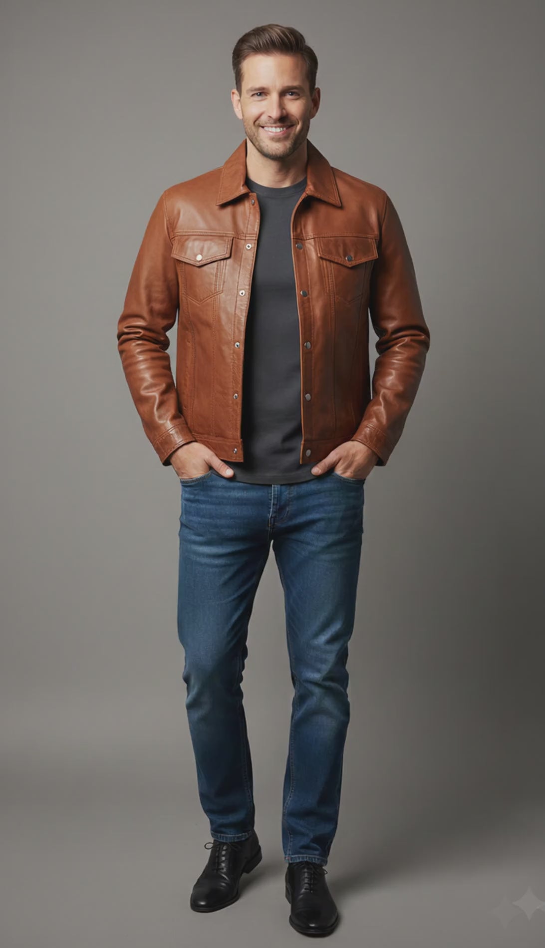 Classic Leather Jacket Genuine Leather Regular Fit Spread Collar Zip Front Closure Aviator Style